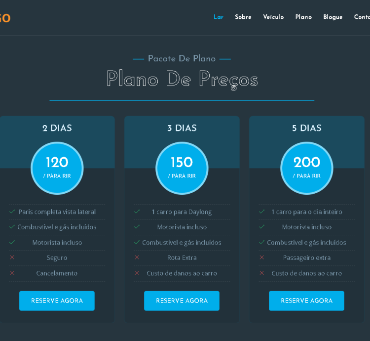 – Lista de planos e pacotes.