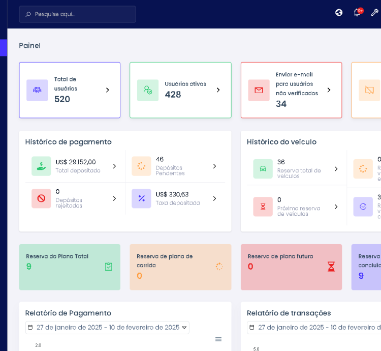 – Perfil completo dos veículos.