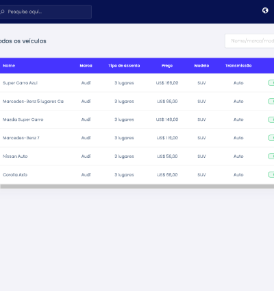 – Lista de todos os veículos.